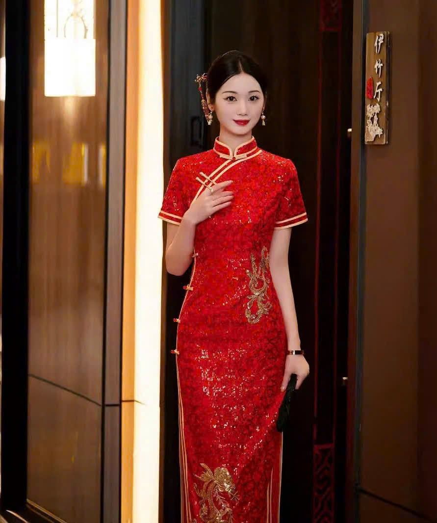 Sườn Xám Dài Hồng Dao